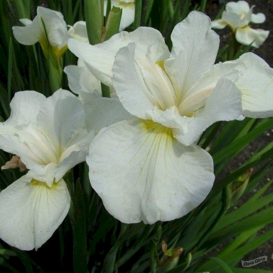 Ирис сибирский Swan in Flight - это изысканное растение, которое поражает своей красотой и изяществом. Его высота может достигать 80-100 см, что делает его идеальным выбором для создания ярких цветочных композиций в саду. Цветки ириса Swan in Flight окрашены в белый цвет с желтоватым центром, что придает им особую нежность и элегантность.