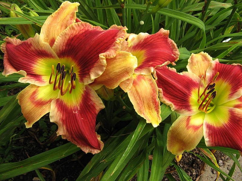 Рассада лилейника Майк Рид – красивый сорт, которые проявляет себя с положительной стороны уже в первый год после высадки. В период цветения на нем распускаются винно-красные цветы с желтоватой сердцевиной. Они достаточно крупные, воронковидной формы и составляют соцветия по 2 – 10 цветков в каждом. Сорт хорошо переносит зиму и заморозки, способен сохранять свои декоративные качества до поздней осени. На зиму проводить обрезку листьев не нужно. Растение может расти без пересадок очень долгое время, его внешний вид от этого никак не пострадает. Лилейник Майк Рид при оформлении сада может дополняться и другими сортами одного срока цветения с ним.