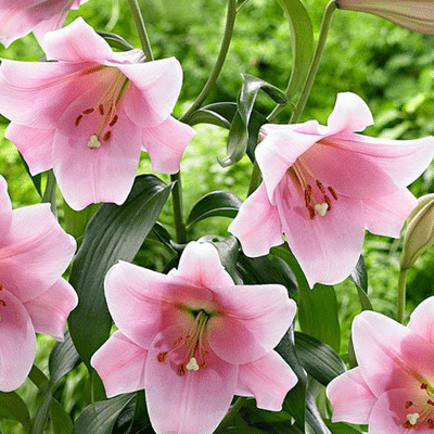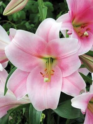 Луковицы лилии ЛО-гибрид Беллсонг порадуют в середине лета, когда на мощных стеблях распустятся роскошные воронковидные цветки. Они имеют очень крупный размер и лепестки нежного розового оттенка с более ярким центром и светлыми краями. ЛО-гибриды были выведены в результате скрещивания восточных и длинноцветковых лилий. Лилия Беллсонг – яркий представитель этих сортов. Ее крепкие стебли достигают 140 см в высоту. Цветки имеют трубчатую форму, при этом их лепестки широко раскрыты и немного загнуты. Цветет данный сорт в июле-августе, наполняя сад неповторимым сильным ароматом.